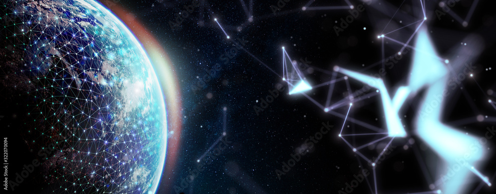 Wall mural global network for the exchange of data on the planet earth. blue black ground. elements of this ima - Wall murals Wall mural global network for the exchange of data on the planet earth. blue black ground. elements of this ima - Wall murals