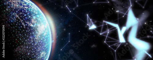 Wall mural global network for the exchange of data on the planet earth. blue black ground. elements of this ima