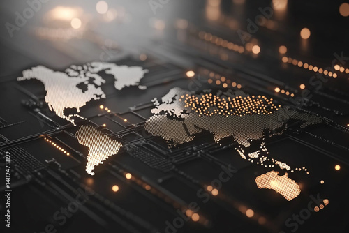 Wall mural global network illuminated world map digital technology circuit board - Wall murals Wall mural global network illuminated world map digital technology circuit board - Wall murals