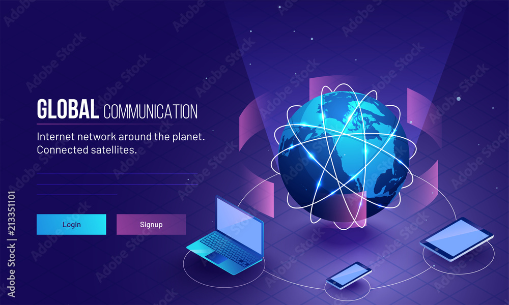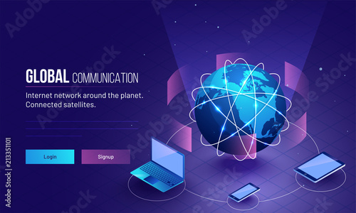 Wall mural global network or communication concept based responsive landing page design with 3d illustration of - Wall murals Wall mural global network or communication concept based responsive landing page design with 3d illustration of - Wall murals