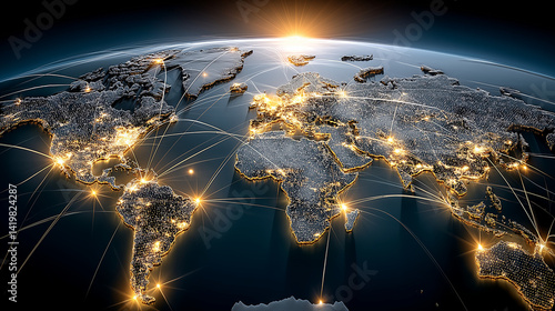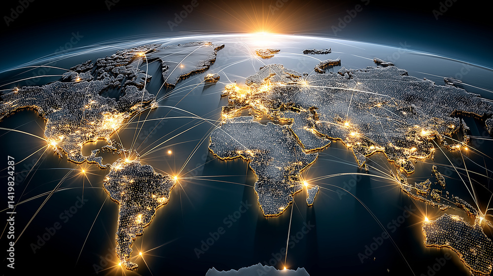 Global network: a mesmerizing aerial view showcasing a interconnected network of lights illuminates Wall mural
