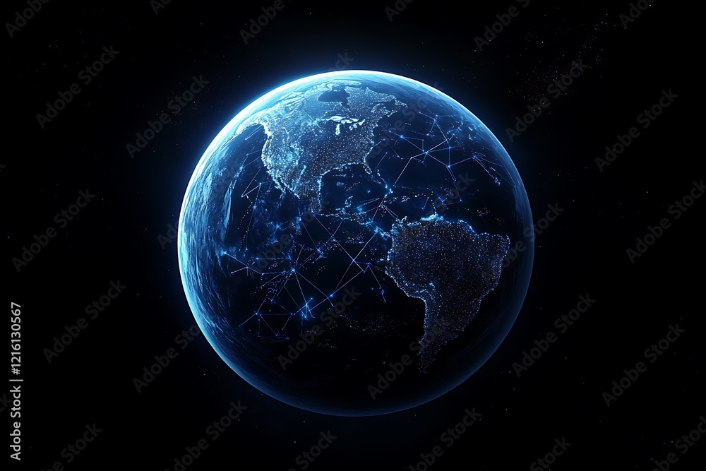 The watermark will not be included on Wall mural.: Global network: earth from space with illuminated connections