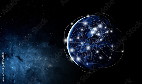 Wall mural global networking and international communication. planet earth as a symbol of the global network. e