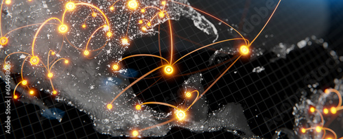 The watermark will not be included on Wall mural.: Globalization and communication concept - earth and luminous rays - 3d rendering