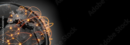 Wall mural globalization and communication concept. earth and luminous rays. 3d rendering - Wall murals Wall mural globalization and communication concept. earth and luminous rays. 3d rendering - Wall murals