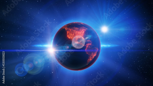 Wall mural globalization and communication concept. earth and luminous rays. 3d rendering