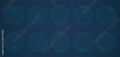 Wall mural : Globe grid spheres - striped 3d wireframe spheres, geometry globe grid, earth latitude and longitude