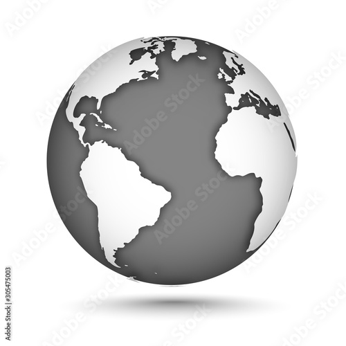 Globe icon gray on white with smooth vector shadows and map of the continents of the world - vector iWall mural
