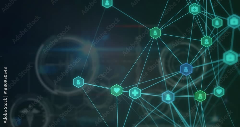 Wall mural : Globe of medical icons over digital interface with data processing against blue background