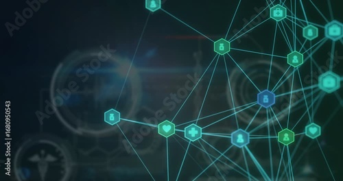 The watermark will not be included on Wall mural.: Globe of medical icons over digital interface with data processing against blue background