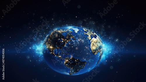 The watermark will not be included on Wall mural.: Globe of the planet earth with blue lights and particles - , generative ai