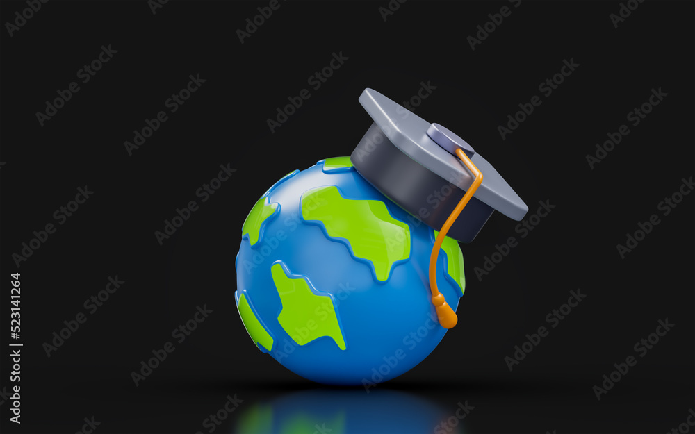Globe sign with graduation cap on dark background 3d render concept for student of the yearWall mural