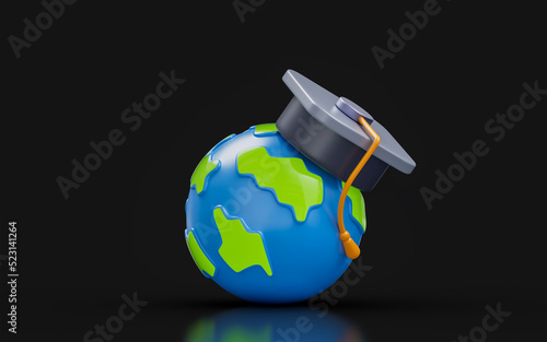 Wall mural : Globe sign with graduation cap on dark background 3d render concept for student of the year