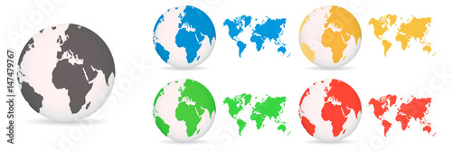 The watermark will not be included on Wall mural.: Globes with world maps different colored on a white background