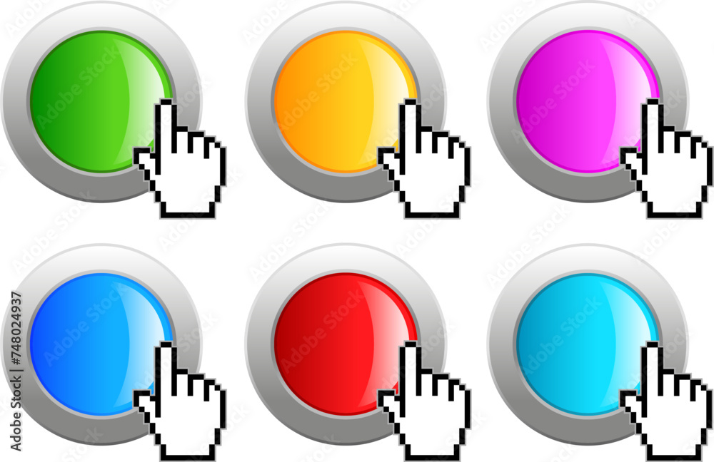 Wall mural glossy web buttons set, glass and metal click buttons with cursor - Wall murals Wall mural glossy web buttons set, glass and metal click buttons with cursor - Wall murals