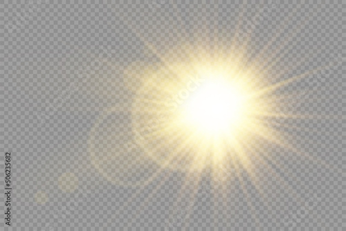 The watermark will not be included on Wall mural.: Glow bright light star, yellow sun rays, bokeh -
