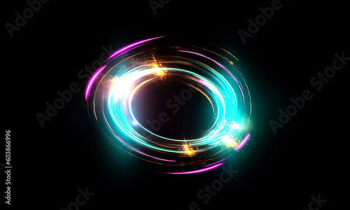 Wall mural glow swirl light effect. circular lens flare. abstract rotational lines on transparent background