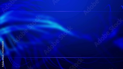 Wall mural : Glowing 3d curves waves rippling on abstract blurred blue frame background - 4k uhd seamless loop ani
