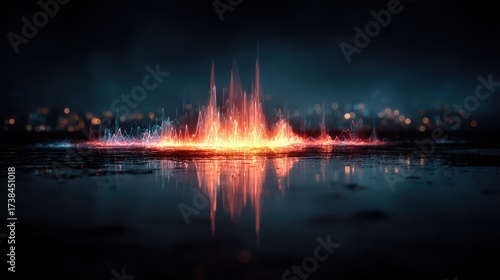 The watermark will not be included on Wall mural.: Glowing abstract soundwave visualization in dark background