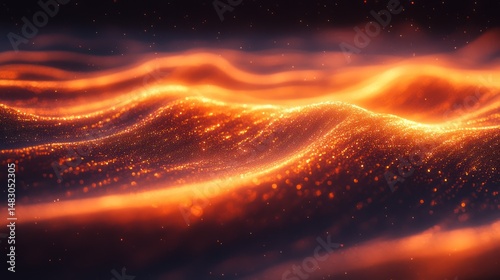 Wall mural : Glowing abstract waves with sparkling lights are floating in space