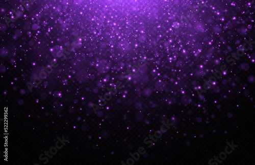 Wall mural glowing background of sparkles particles. blurred bokeh twinkle on transparent background. purple gl