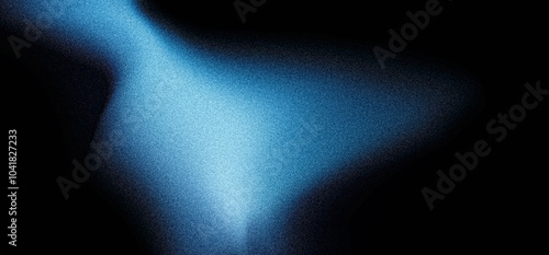 Wall mural glowing blue abstract shape, dark grainy black blue background, noise texture futuristic dynamic pos