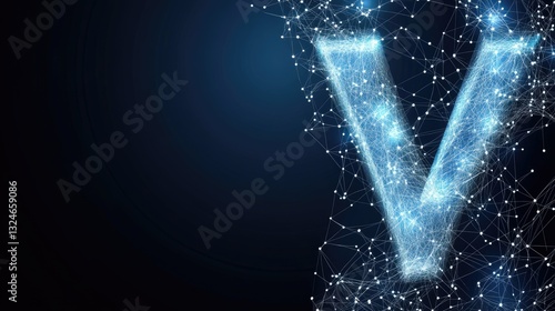 The watermark will not be included on Wall mural.: Glowing blue and orange lights form a digital wave pattern made of dots, creating an abstract backgr