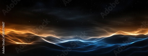 The watermark will not be included on Wall mural.: Glowing blue and orange lights form a digital wave pattern made of dots, creating an abstract backgr
