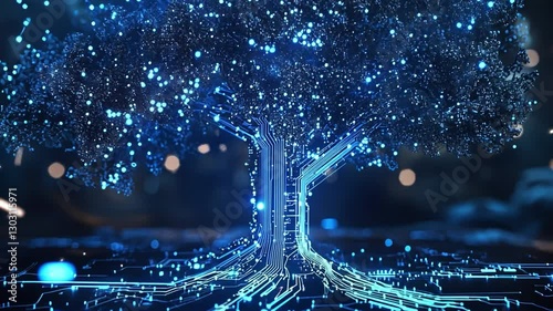 The watermark will not be included on Wall mural.: Glowing blue circuit tree representing ai and machine learning, futuristic technology background