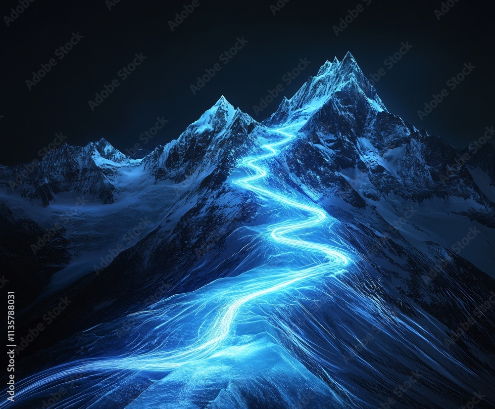 The watermark will not be included on Wall mural.: Glowing blue energy path on snowy mountain peak