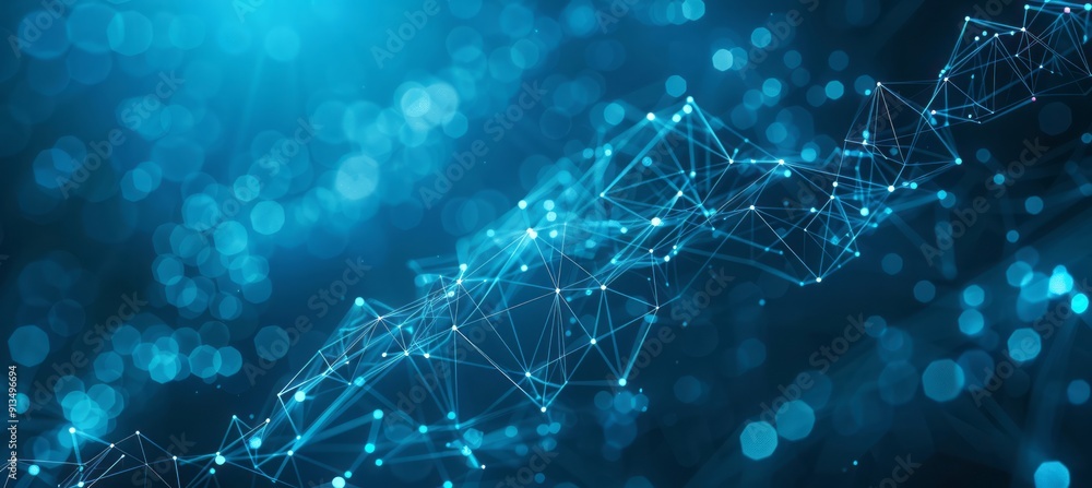 Wall mural : Glowing blue network of connected nodes and lines on a dark background