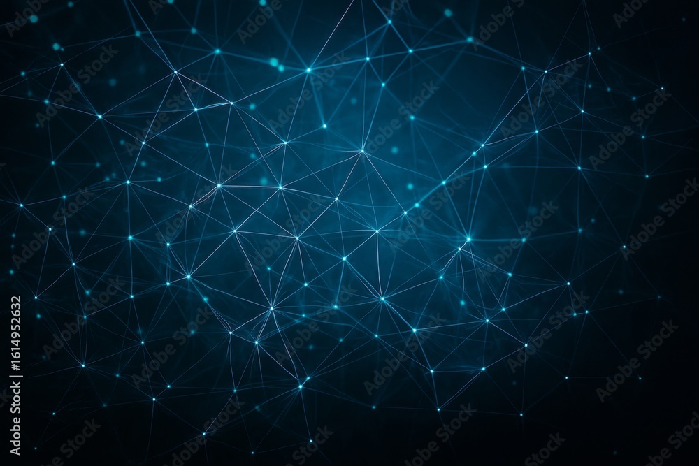 The watermark will not be included on Wall mural.: Glowing blue polygonal network of connected dots and lines on a dark background illustrating digital