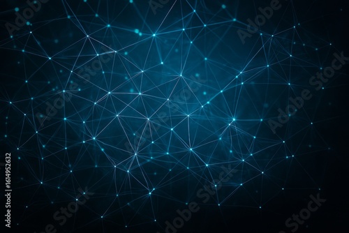 Wall mural glowing blue polygonal network of connected dots and lines on a dark background illustrating digital