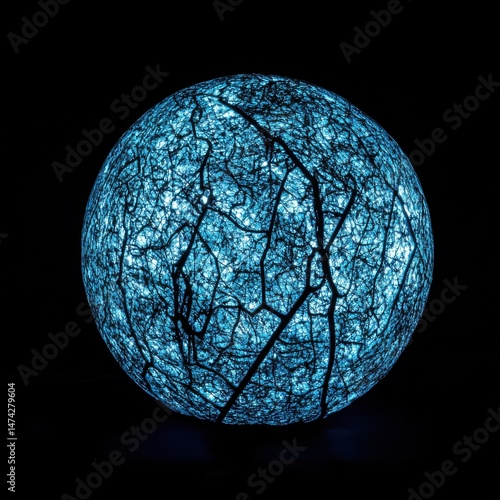 The watermark will not be included on Wall mural.: Glowing blue sphere with vein-like patterns on black background studio shot abstract concept