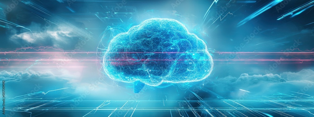 The watermark will not be included on Wall mural.: Glowing brain visualization with digital background and light effects