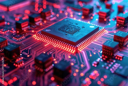 Wall mural glowing circuit board with central processing unit - Wall murals Wall mural glowing circuit board with central processing unit - Wall murals