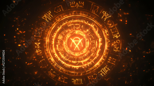 Wall mural glowing circular rune array with ancient symbols. ancient luminescent glyphs. illustration