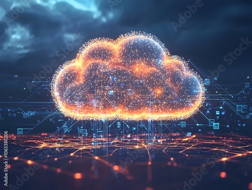 Wall mural glowing cloud shaped brain symbolizing cloud and cognitive computing