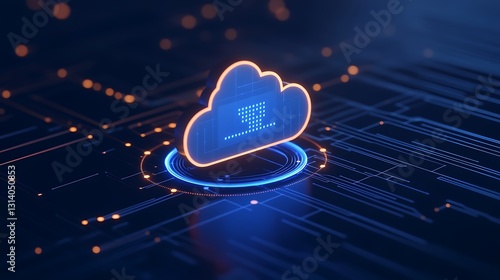 Wall mural glowing cloud storage icon with download symbol and digital circuit background for tech and data sto - Wall murals Wall mural glowing cloud storage icon with download symbol and digital circuit background for tech and data sto - Wall murals