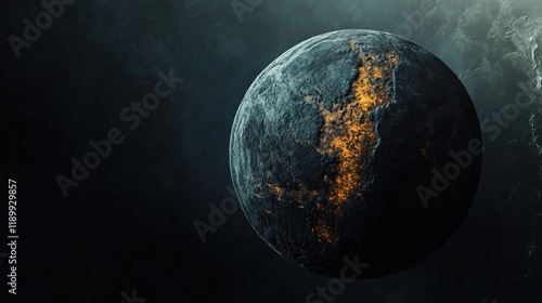 Wall mural glowing core of a desolate planet in the dark vastness of space: a digital art representation - Wall murals Wall mural glowing core of a desolate planet in the dark vastness of space: a digital art representation - Wall murals