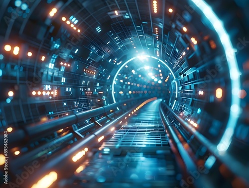 Wall mural glowing cyber tunnel with dynamic visual effects for futuristic digital background