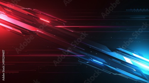 Wall mural : Glowing diagonal red and blue lights form abstract technology background with lines