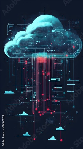 Wall mural : Glowing digital cloud with data streams on a dark background