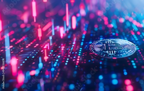 The watermark will not be included on Wall mural.: Glowing digital cryptocurrency and blockchain network background
