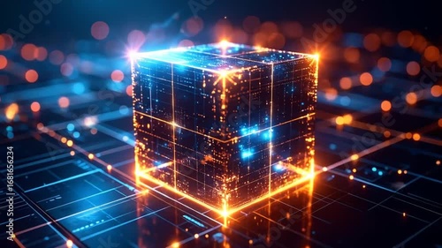 Wall mural : Glowing digital cube: abstract technology and data visualization