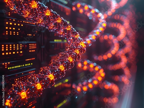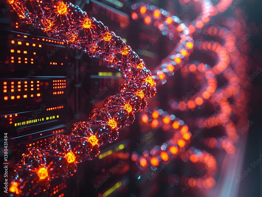 The watermark will not be included on Wall mural.: Glowing digital data strands connecting to a server