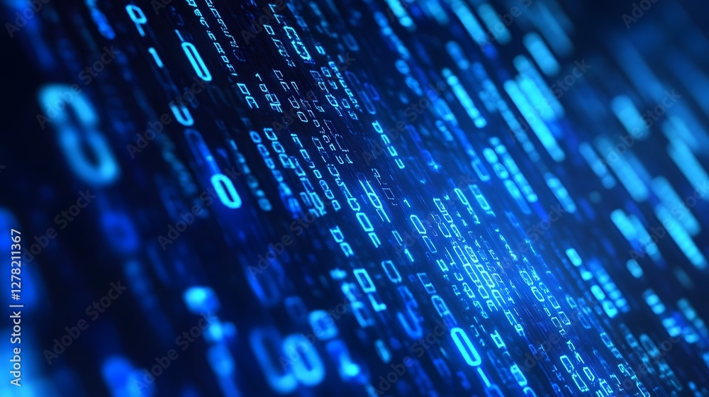 Wall mural glowing digital matrix in futuristic blue tones abstract background technological innovation coding  - Wall murals Wall mural glowing digital matrix in futuristic blue tones abstract background technological innovation coding - Wall murals