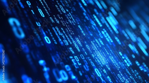 Wall mural glowing digital matrix in futuristic blue tones abstract background technological innovation coding