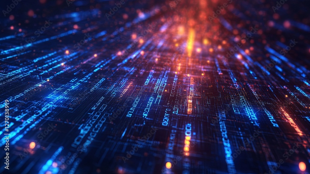 Wall mural glowing digital symbols in abstract form, representing the essence of modern coding and technology.