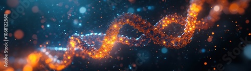 Wall mural glowing dna strand in futuristic digital space with bokeh light effects and molecular structure visu - Wall murals Wall mural glowing dna strand in futuristic digital space with bokeh light effects and molecular structure visu - Wall murals